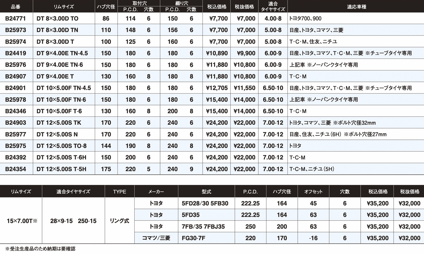 各種特殊車両用ホイール、アルミホイール、スチールホイールなどを販売しております。